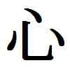 心 【シン】 heart, mind, spirit, vitality, inner strength, bottom of