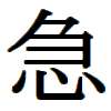 急 【キュウ】 sudden, abrupt, unexpected, urgent, pressing, steep, sharp,
