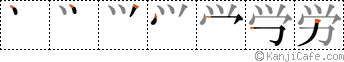 労 【ロウ】 labor, labour, toil, trouble, pains, work, effort, striving